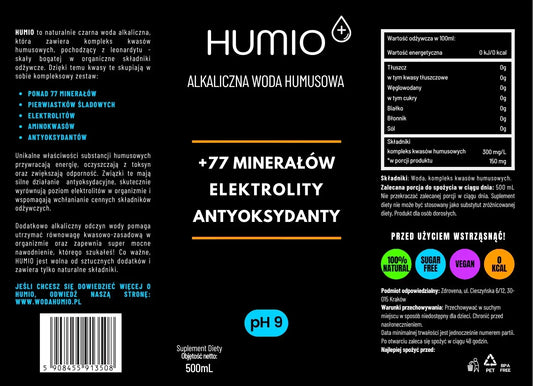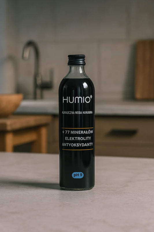 Woda alkaliczna HUMIO to naturalne nawodnienie wzbogacone kwasami humusowymi.
